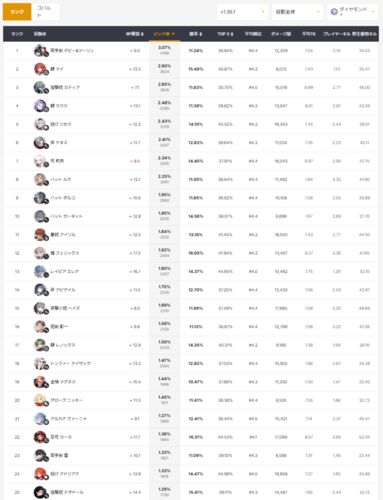 すべてdakggのものをそのまま記録しただけです。 ありがとう、dakgg:https://dak.gg/er 注意事項 ・ピック率ソートのまま表示・パッチ中間などのデータは取っておらず、「パッチすべて」の統計が出切ったら反映例)1.33の統計は1.34が始まってから 1.36.1※…