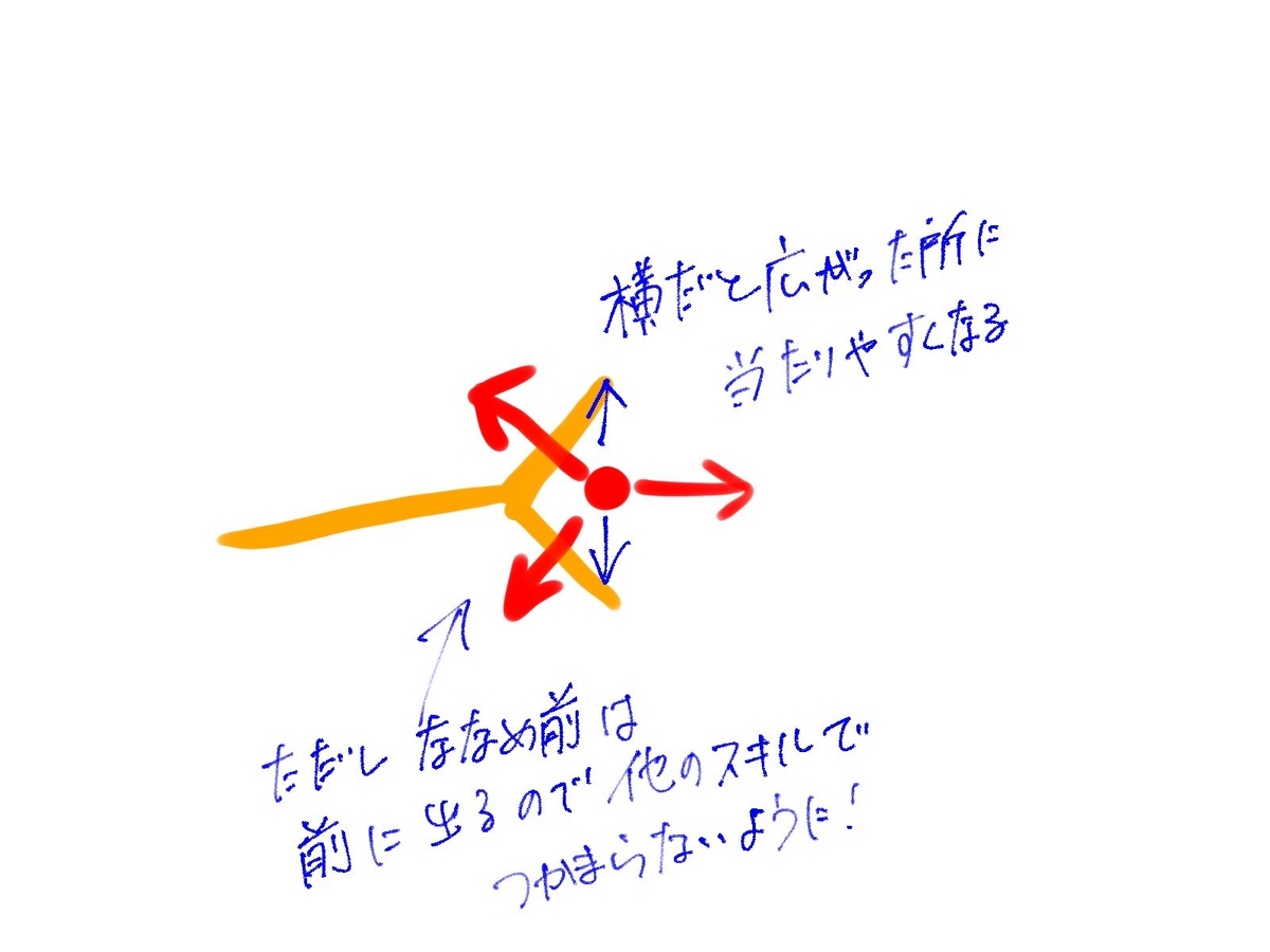 至近距離であてることもできて、唯一Qの中で射程を気にせず打てます。